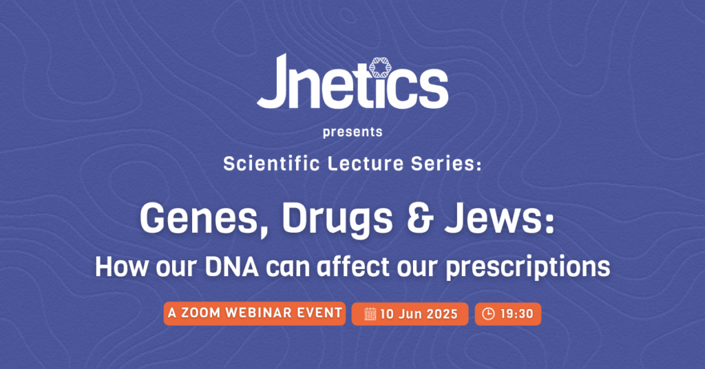 Join us on 10th June for an insightful discussion on pharmacogenetics—the study of how our genetic makeup influences our response to medications. Learn how this growing field is shaping personalized healthcare and what it means for individuals, particularly those of Jewish ancestry, who may have unique genetic factors affecting drug metabolism.